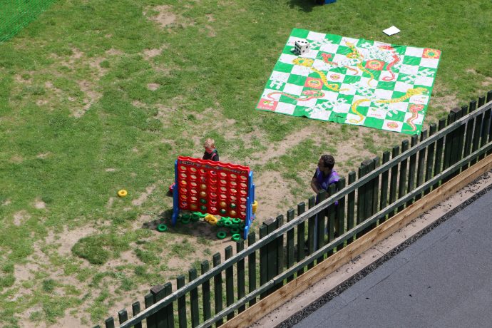 Giant games are a variety of large versions of popular table top games. These are usually set up outside the providore between the Tunnels and Assault Course. The games we provide are Giant Jenga, Snakes & Ladders, Connect 4, Dominoes, Giant playing cards and Naughts & Crosses.