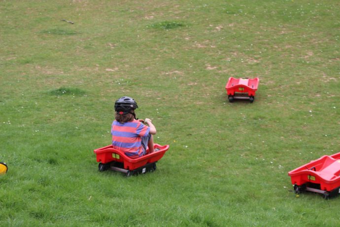 Grass sledging sessions at Frylands Wood are run on the slope on Farleigh Field. We use Tiroll grass sledges, which are similar to snow sledges, but with tracks on the bottom. There are 6 sledges so theres no waiting for your turn.
